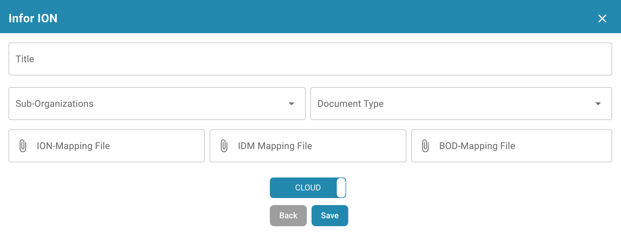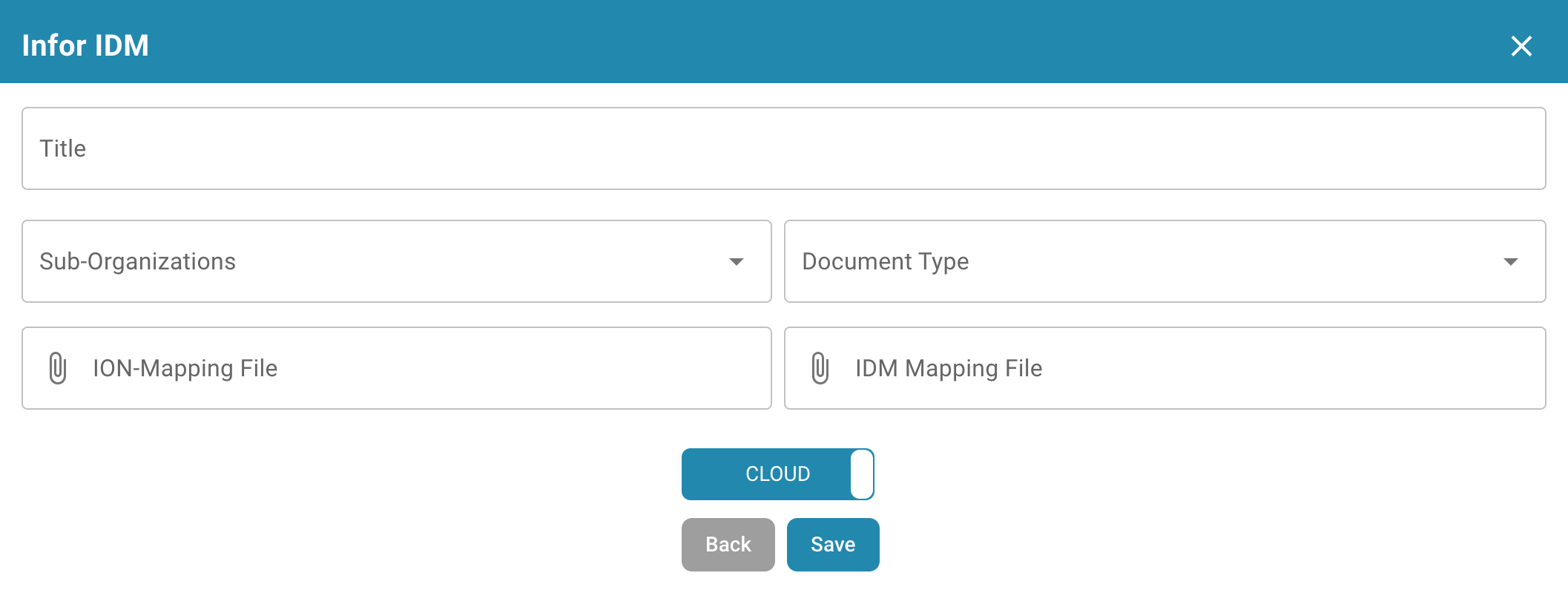 • Cloud / On-Prem Toggle Un interruttore per indicare il tipo di distribuzione Infor:
