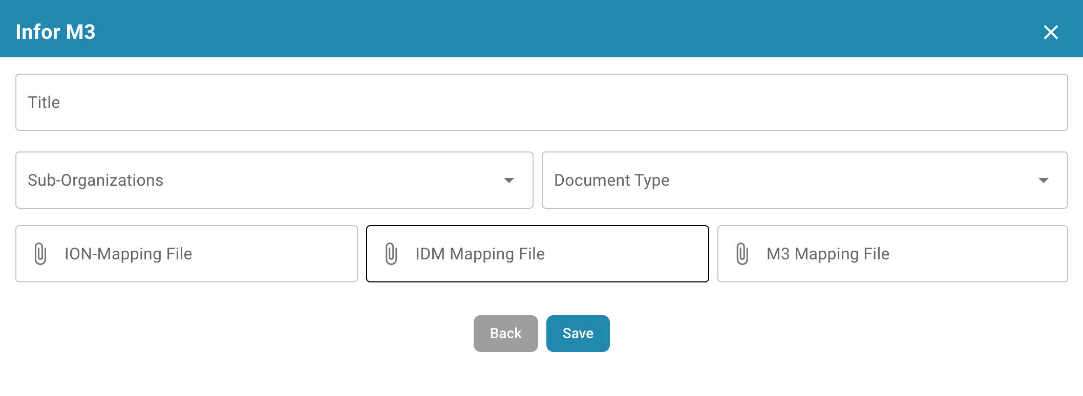 • IDM Mapping File Seleziona un file di mapping dal file manager. Hai bisogno di aiuto per crearne uno? Consulta la Guida al Mapping IDM