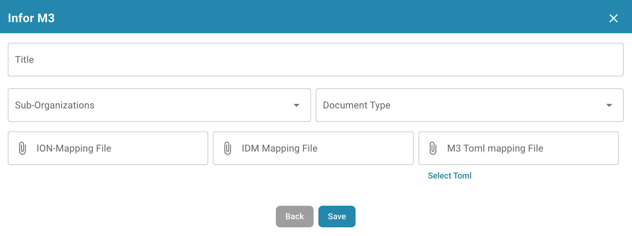 • M3 Mapping File Seleziona un file di mapping dal file manager. Hai bisogno di aiuto per crearne uno? Consulta l'Esempio di Mapping M3arrow-up-right