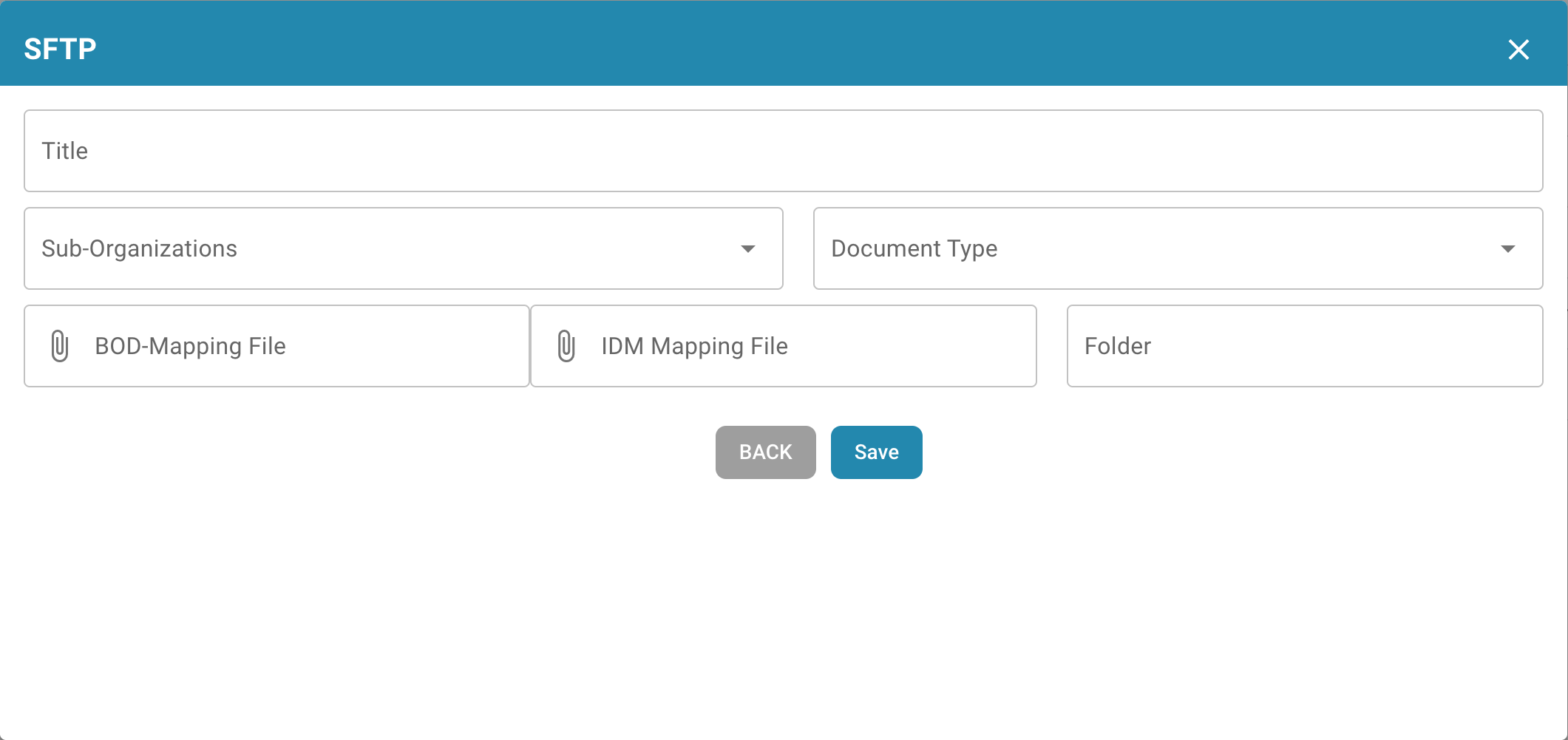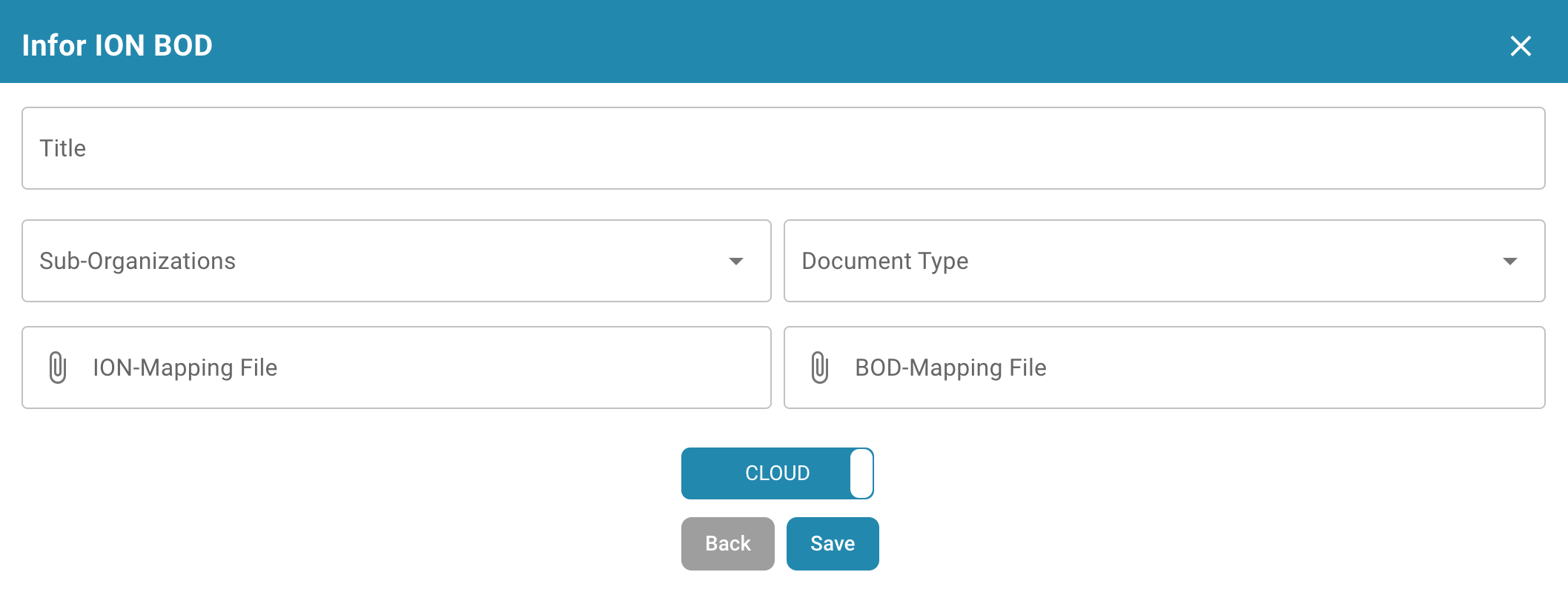 • BOD Mapping File Seleziona un file di mapping dal file manager. Hai bisogno di aiuto per crearne uno? Consulta la Guida al Mapping BOD