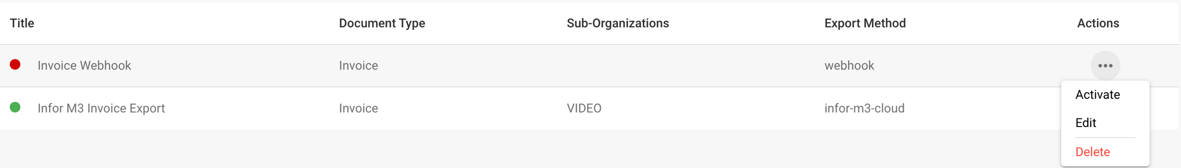 • Puoi avere solo un'esportazione non-Infor attiva (ad es. Webhook, SFTP)