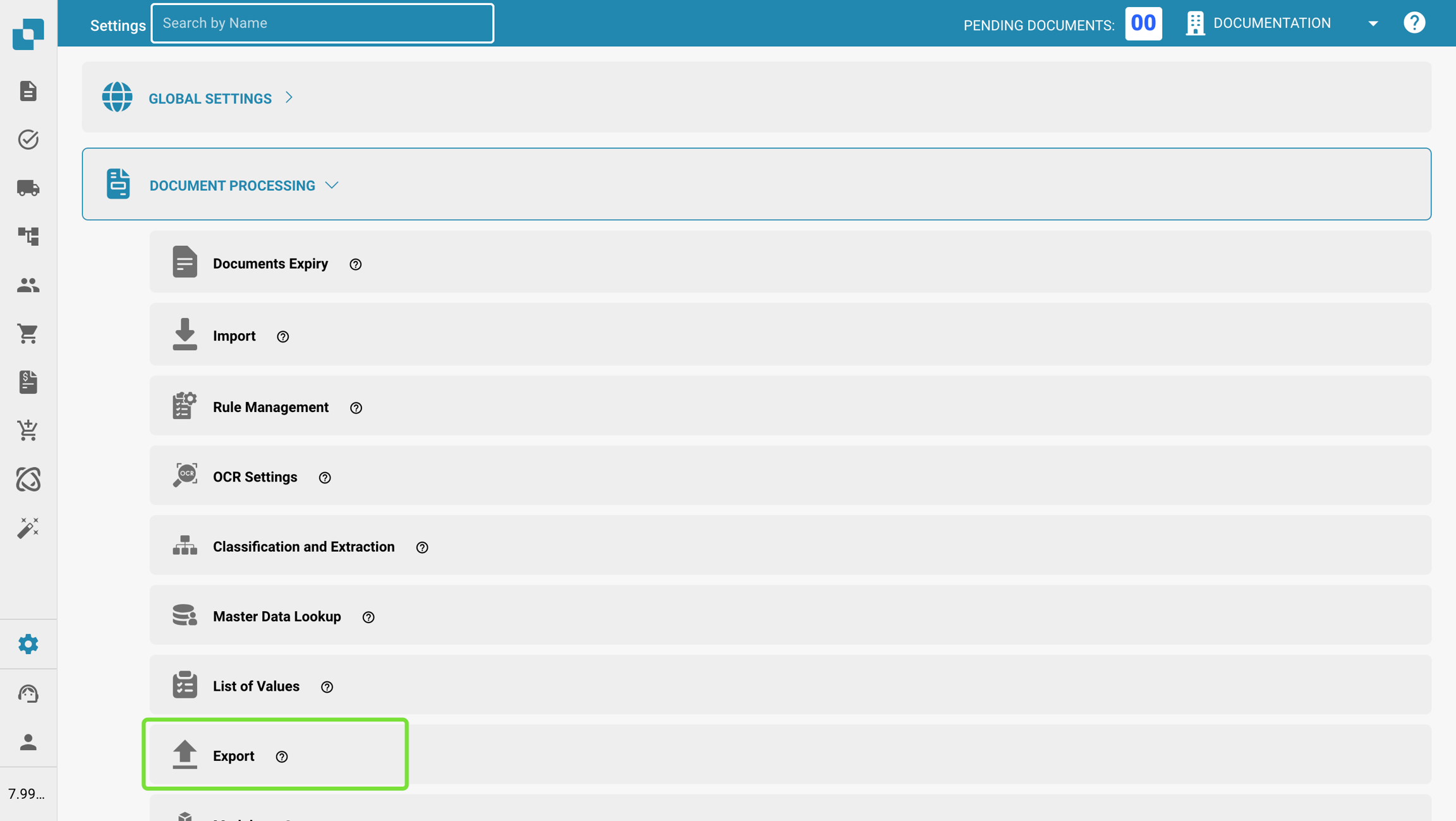 Lo trovi in: ImpostazioniElaborazione documentiEsportazione