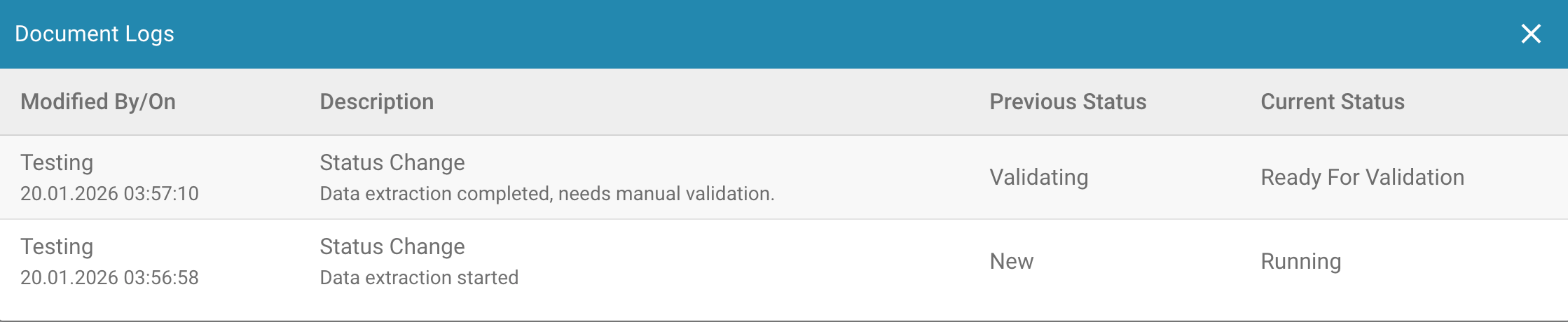 • Include Document History Quando abilitato, il file esportato includerà la cronologia del documento basata sui log disponibili nella dashboard.