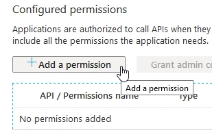 Fare clic su + Add a permission. Questo aprirà il pannello Request API permissions.