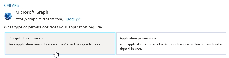Dalle due sottocategorie, selezionare Delegated permissions.