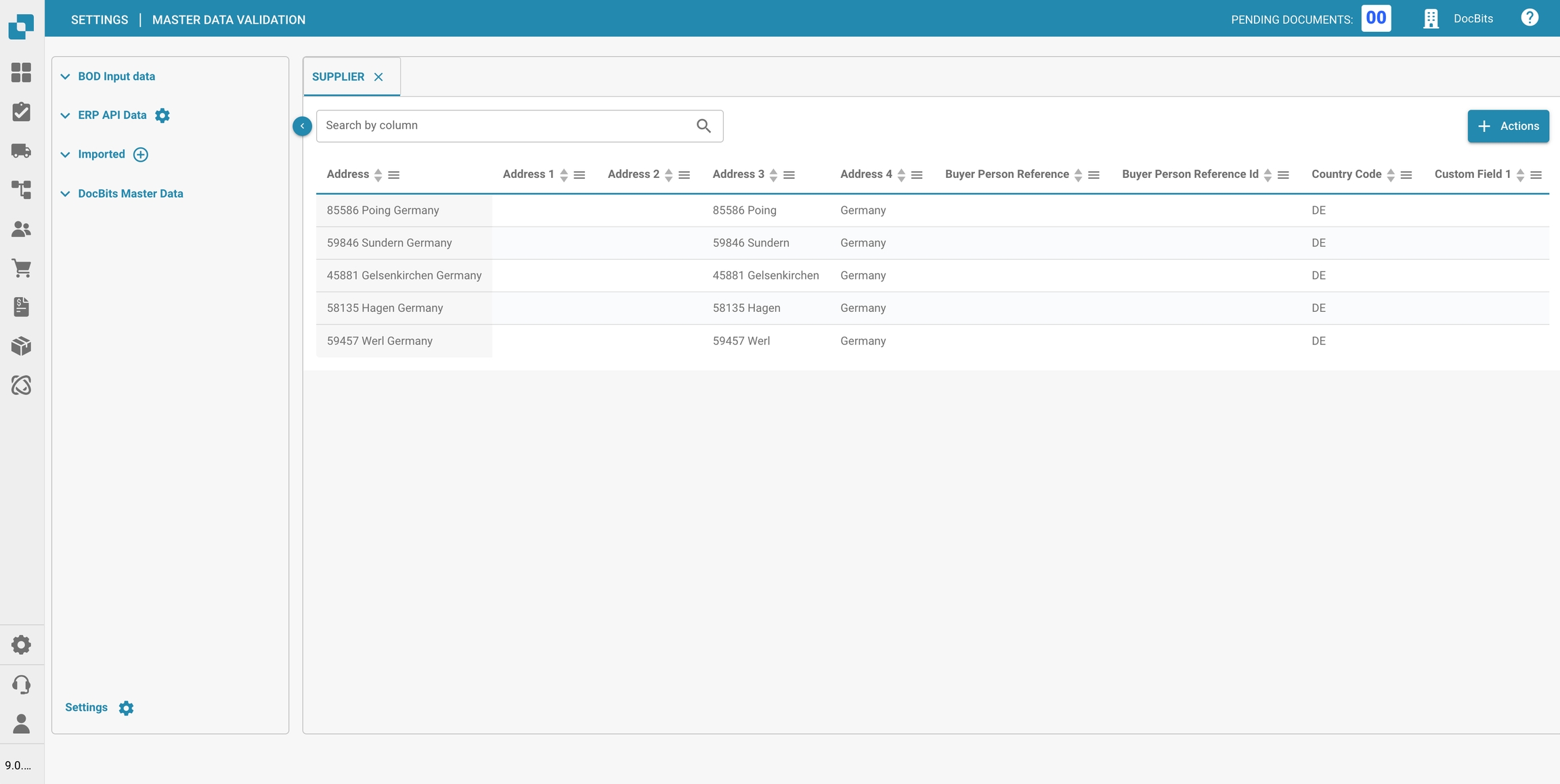 Convalida rispetto ai dati ERP: Sincronizzando i dati master, come le informazioni del fornitore, da Infor a DocBits, puoi convalidare automaticamente i dati estratti dai documenti rispetto ai tuoi dati ERP. Ciò garantisce che le informazioni elaborate (come nomi dei fornitori, indirizzi e codici fiscali) corrispondano ai dati presenti nel tuo sistema ERP, riducendo al minimo errori e discrepanze.