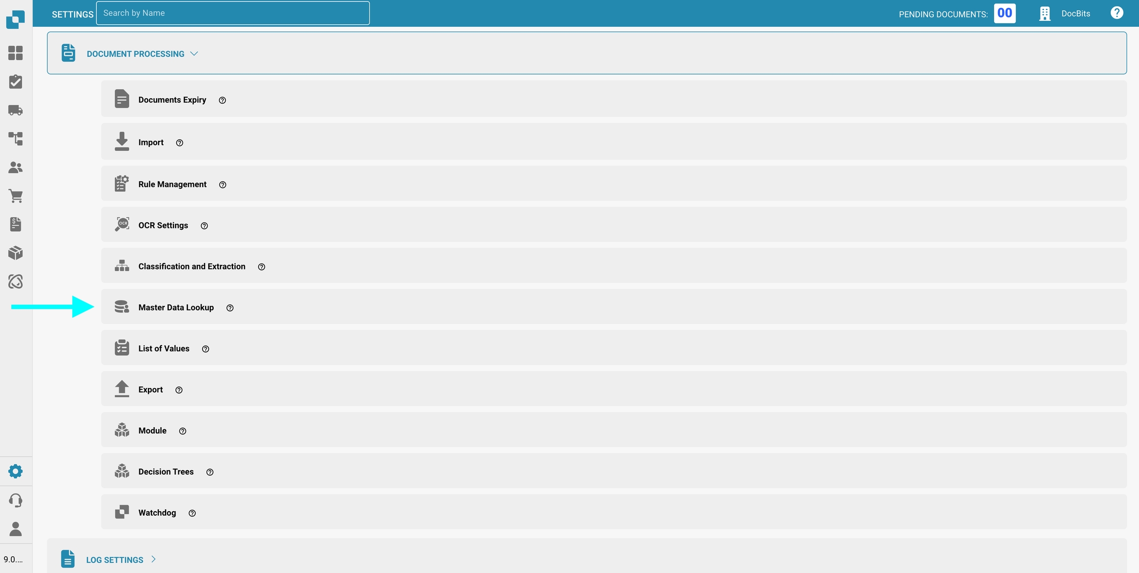 Per accedere alla sezione Ricerca dei dati master, vai a: Impostazioni → Elaborazione dei documenti → Ricerca dei dati master