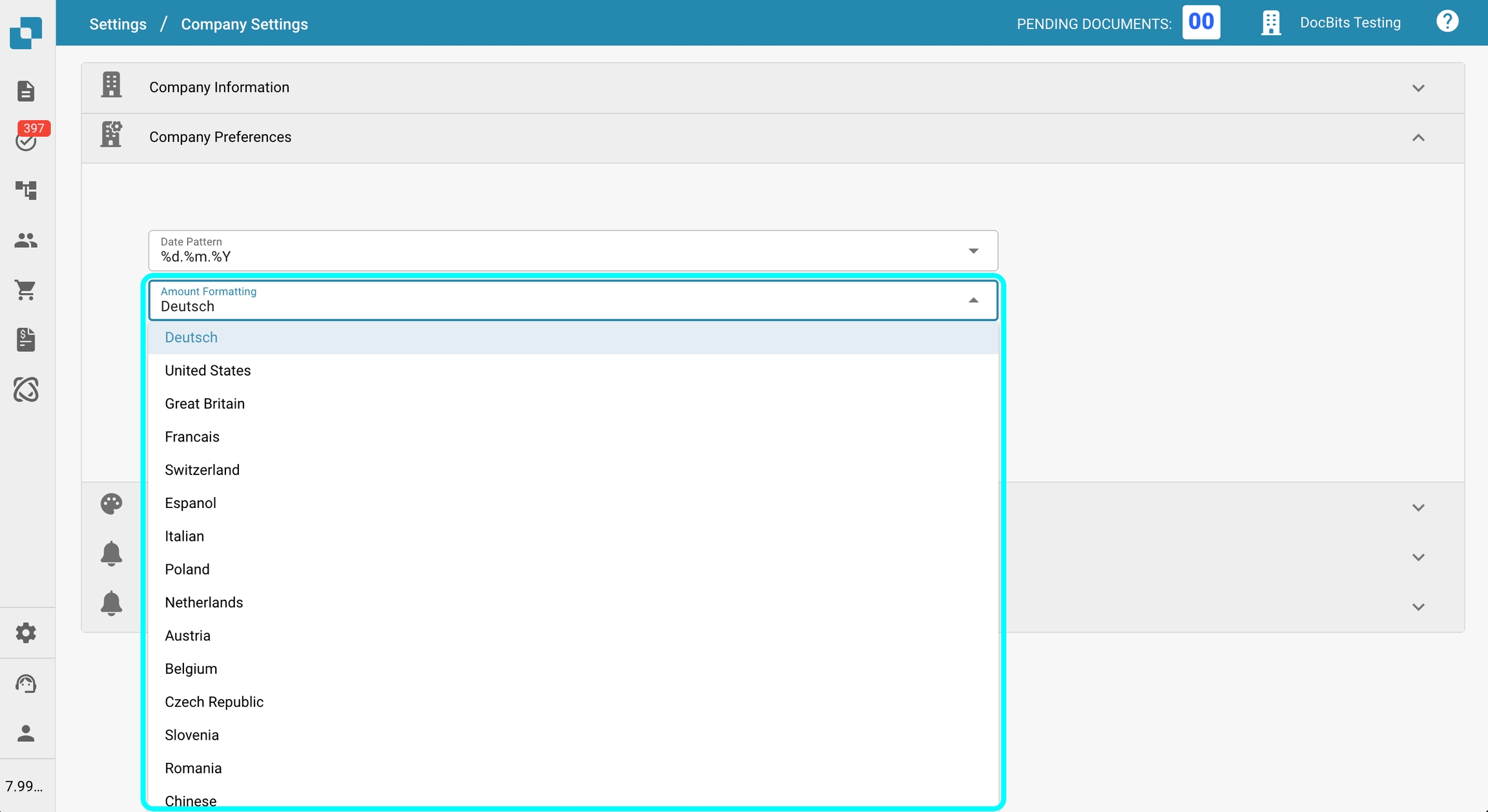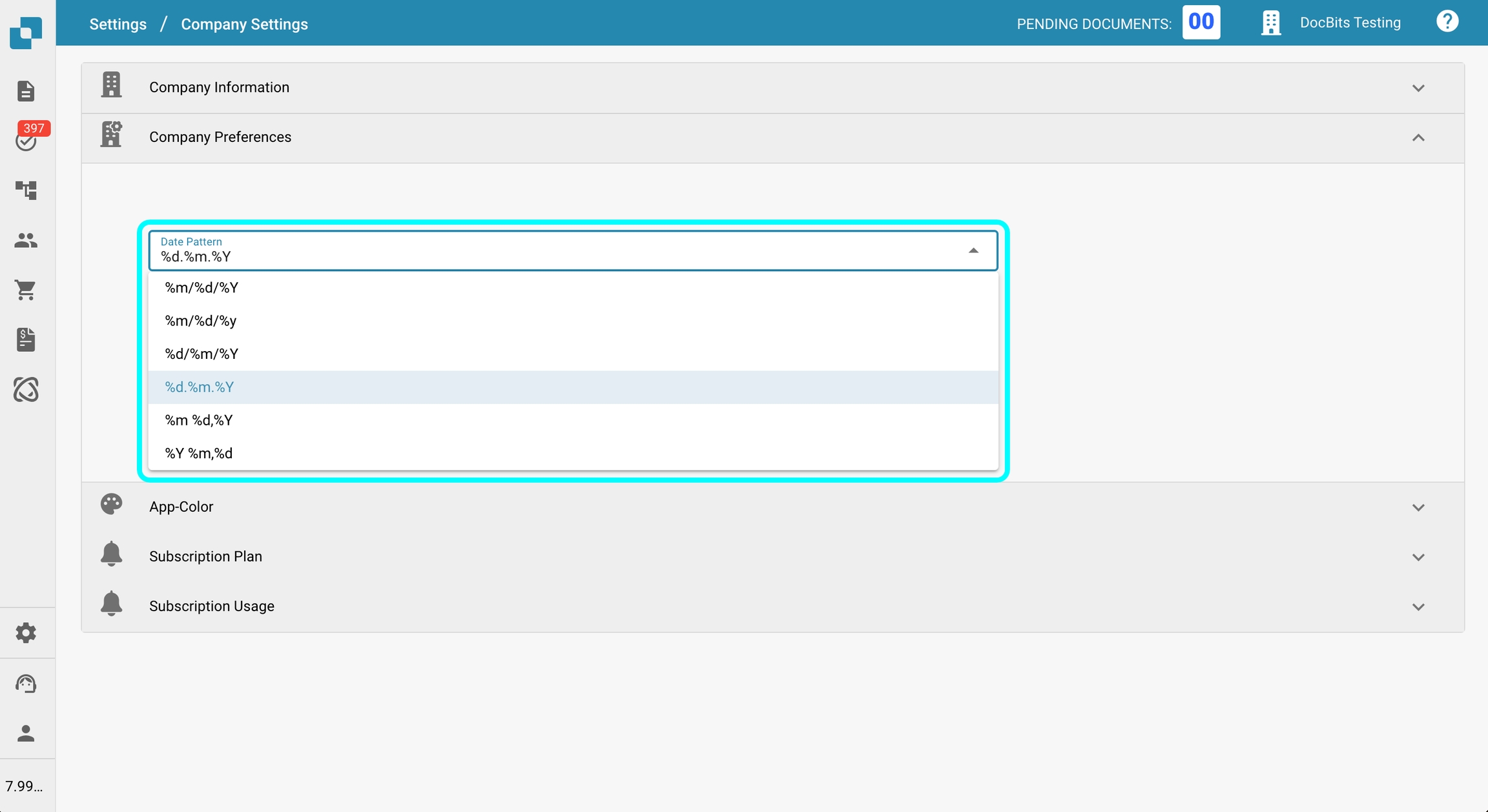 In questa impostazione, puoi scegliere il formato di data da utilizzare in tutto DocBits. Sono disponibili diverse opzioni di formattazione, che ti consentono di personalizzare come vengono visualizzate le date.