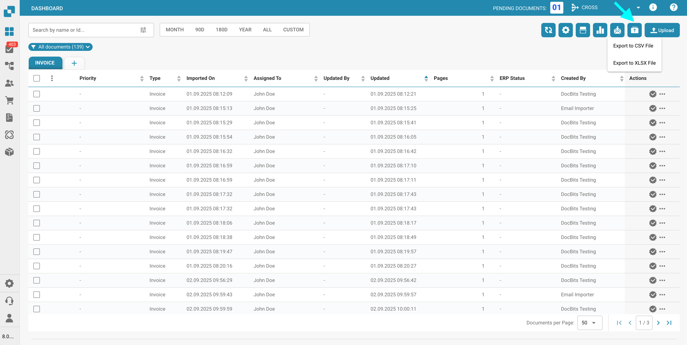 Filtro di stato personalizzato: Consente la creazione e l'applicazione di filtri personalizzati che possono mirare a specifici stati dei documenti come "Nuovo", "In validazione" o "In esportazione". Questo consente agli utenti di accedere rapidamente ai documenti in specifiche fasi di elaborazione.