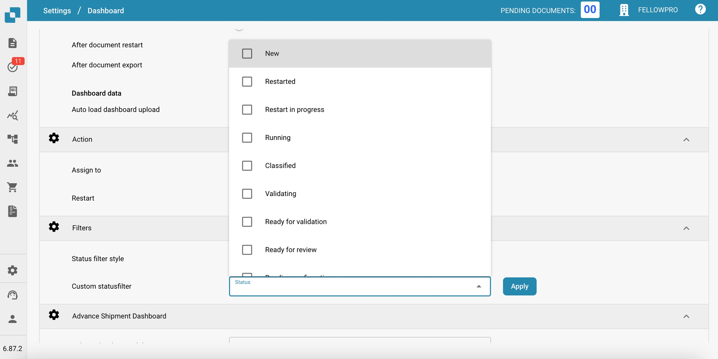 Queste impostazioni del cruscotto sono cruciali per garantire che la piattaforma DocBits sia il più reattiva e utile possibile, fornendo agli utenti uno strumento potente per monitorare e gestire le attività di elaborazione dei documenti direttamente dal cruscotto.