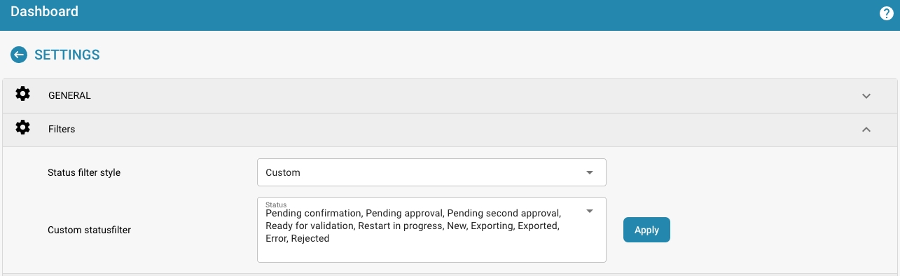 Apri il menu dei filtri nelle impostazioni sotto Cruscotto e fai clic su "Filtri".