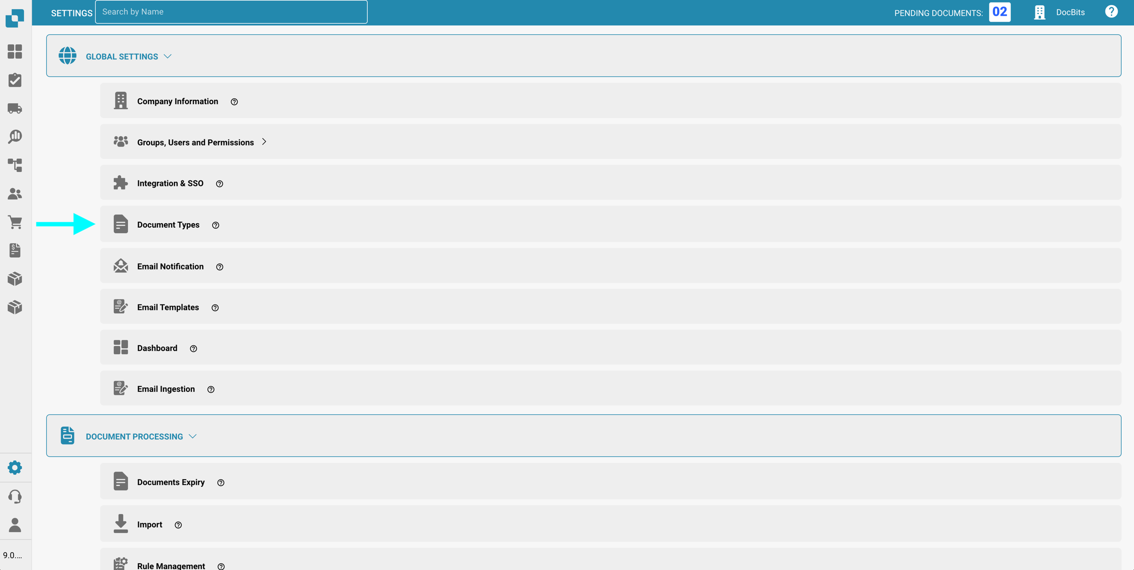 Vai a Impostazioni → Impostazioni globali → Tipi di documenti