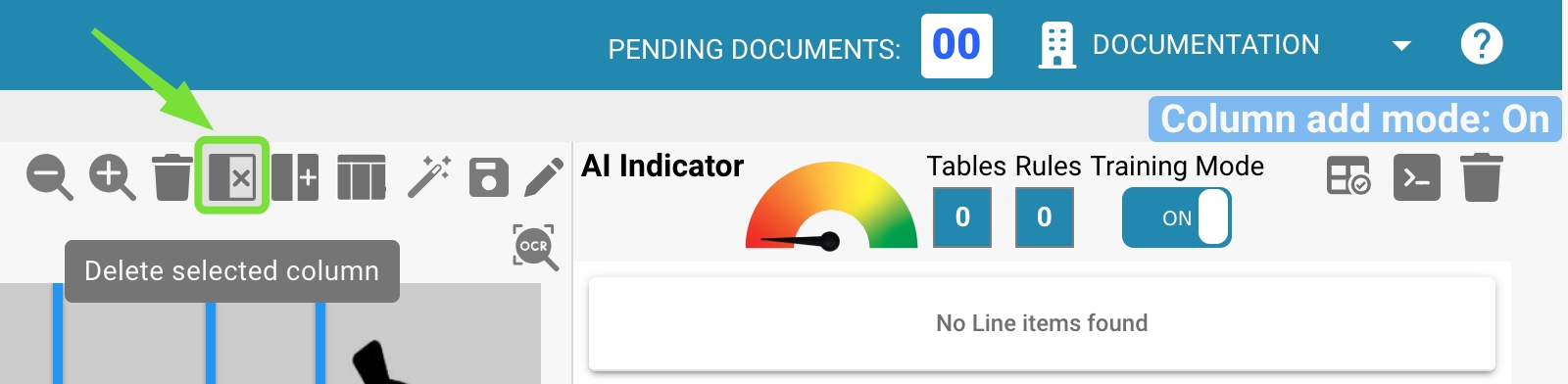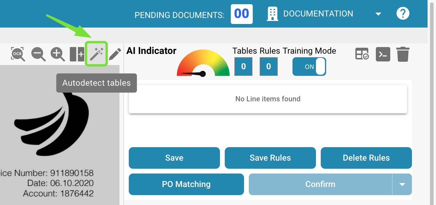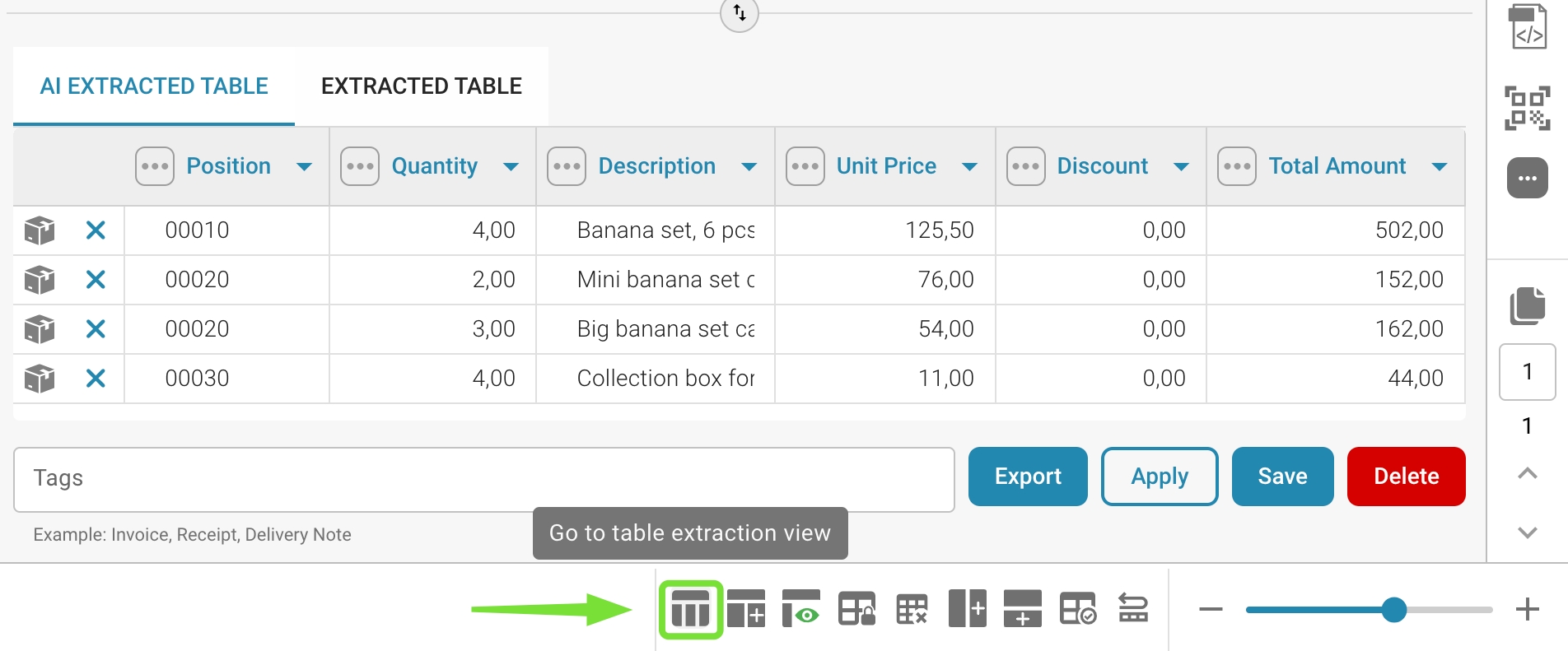 Per definire tabelle e colonne su un documento, si prega di importare un documento, aprirlo e andare alla vista di estrazione della tabella come già noto (tramite "Voci di linea").