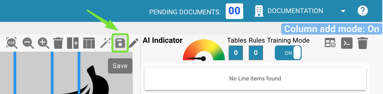 Una volta che hai definito tutte le tabelle e tutte le colonne sul tuo documento, utilizza il pulsante "Salva" per attivare le tue modifiche ed estrarre i dati dal documento:
