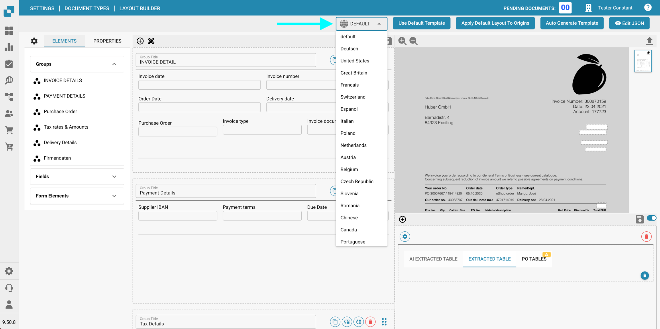 DocBits eccelle nell'adattare i layout dei documenti in base alle loro origini geografiche, standardizzando al contempo elementi come i formati di valuta in base alle impostazioni del browser dell'utente. Esploriamo come puoi sfruttare il Layout Builder per personalizzare i layout per diverse origini, come gli Stati Uniti e la Germania.