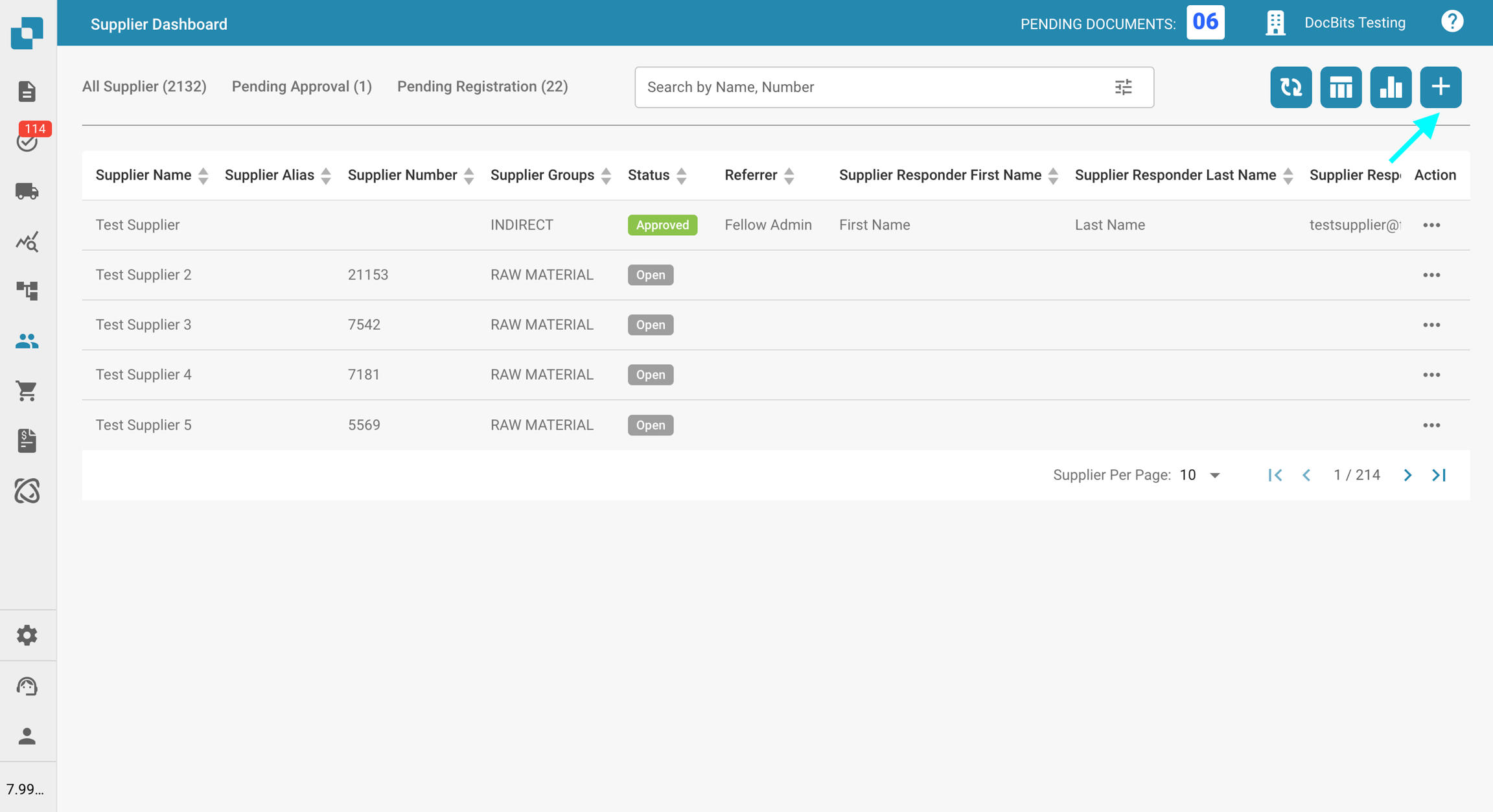 Open: Fornitore esistente che non è ancora stato invitato al portale.