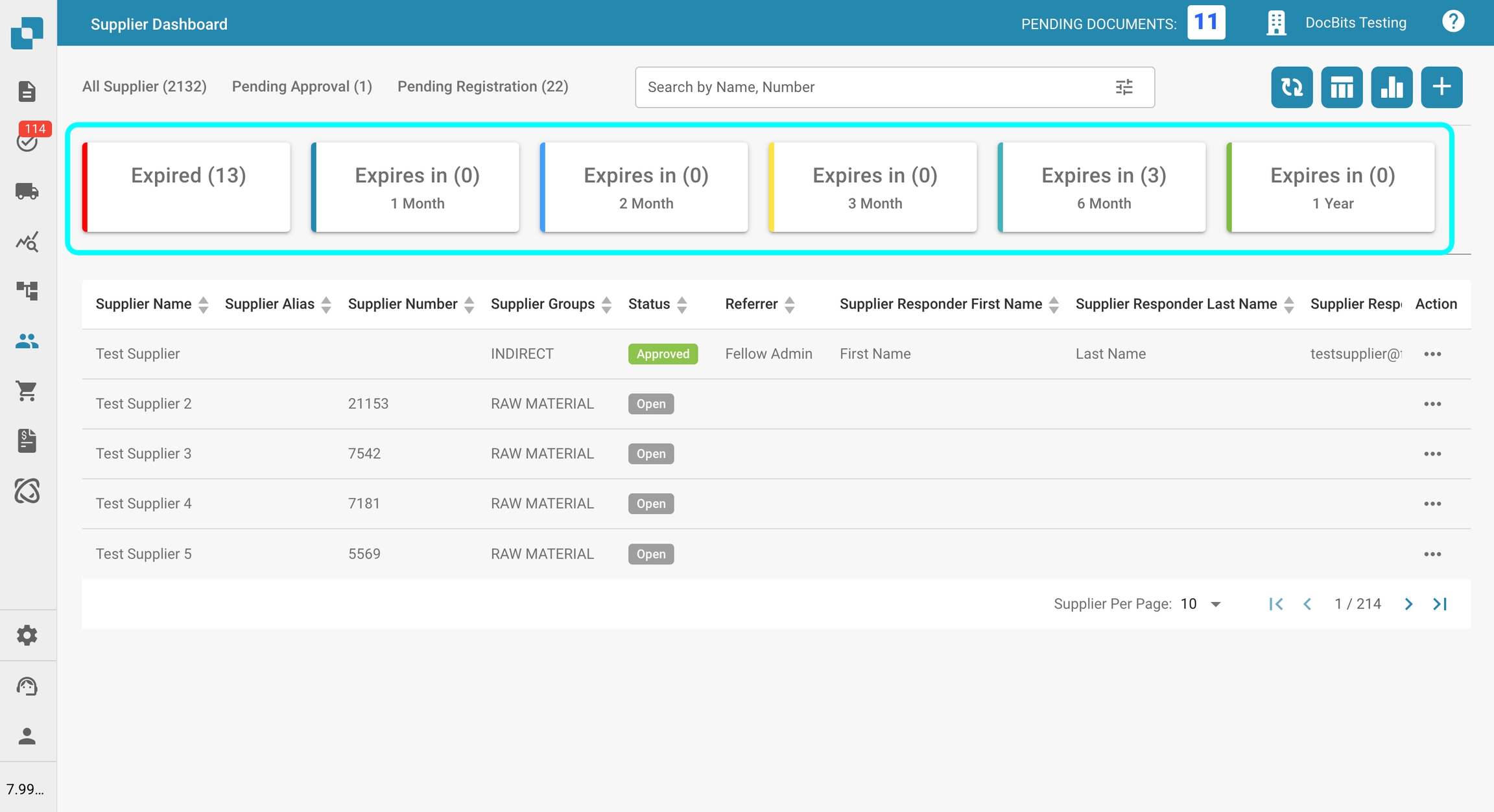 Facendo clic su questo pulsante si aprirà una nuova sezione che mostra quanti fornitori stanno per scadere e quando. Fai clic su qualsiasi categoria per applicare un filtro e visualizzare solo quei fornitori.