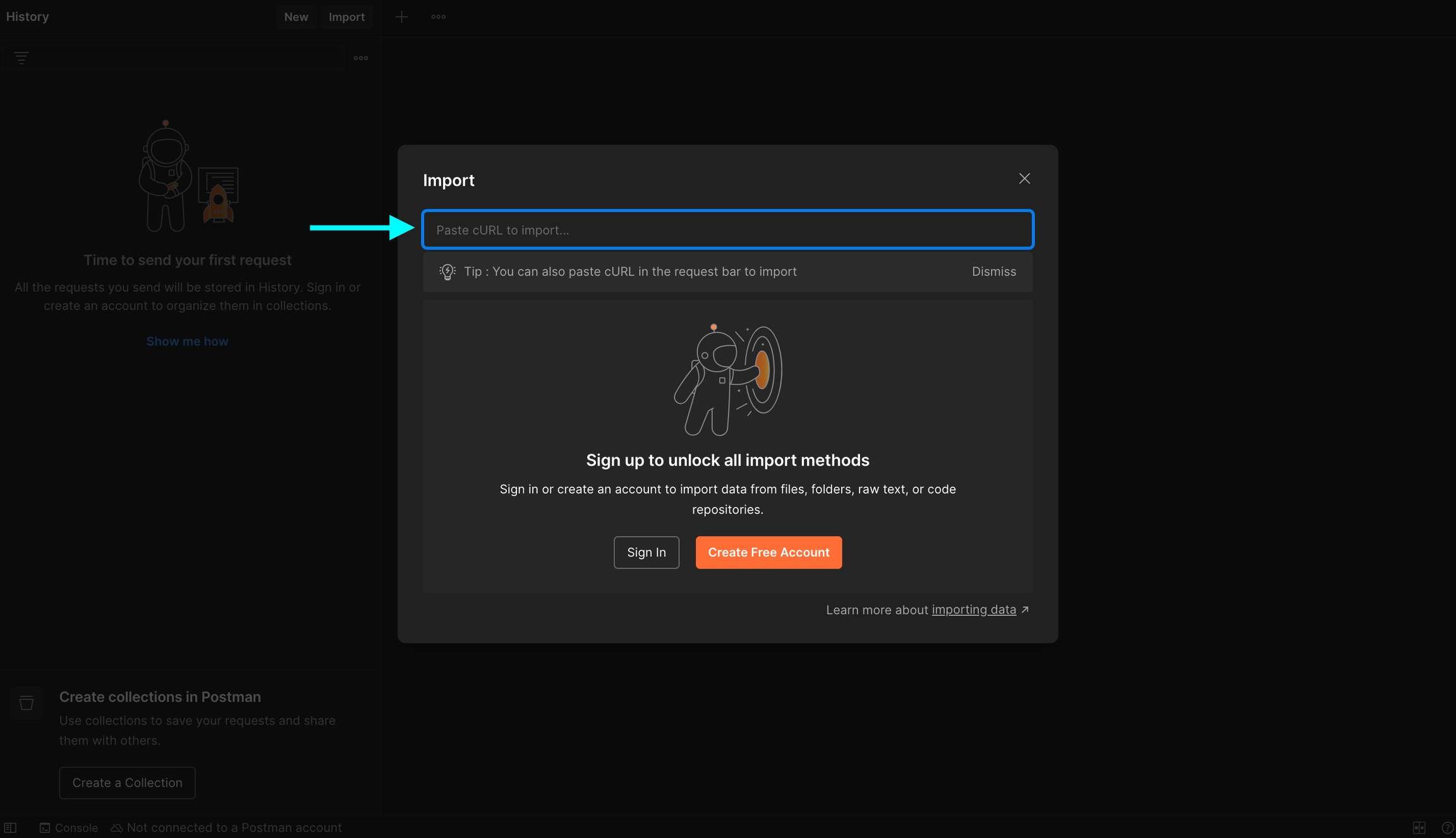 Apri Postman e incolla il seguente comando cURL nella sezione Import. Postman configurerà automaticamente la richiesta.