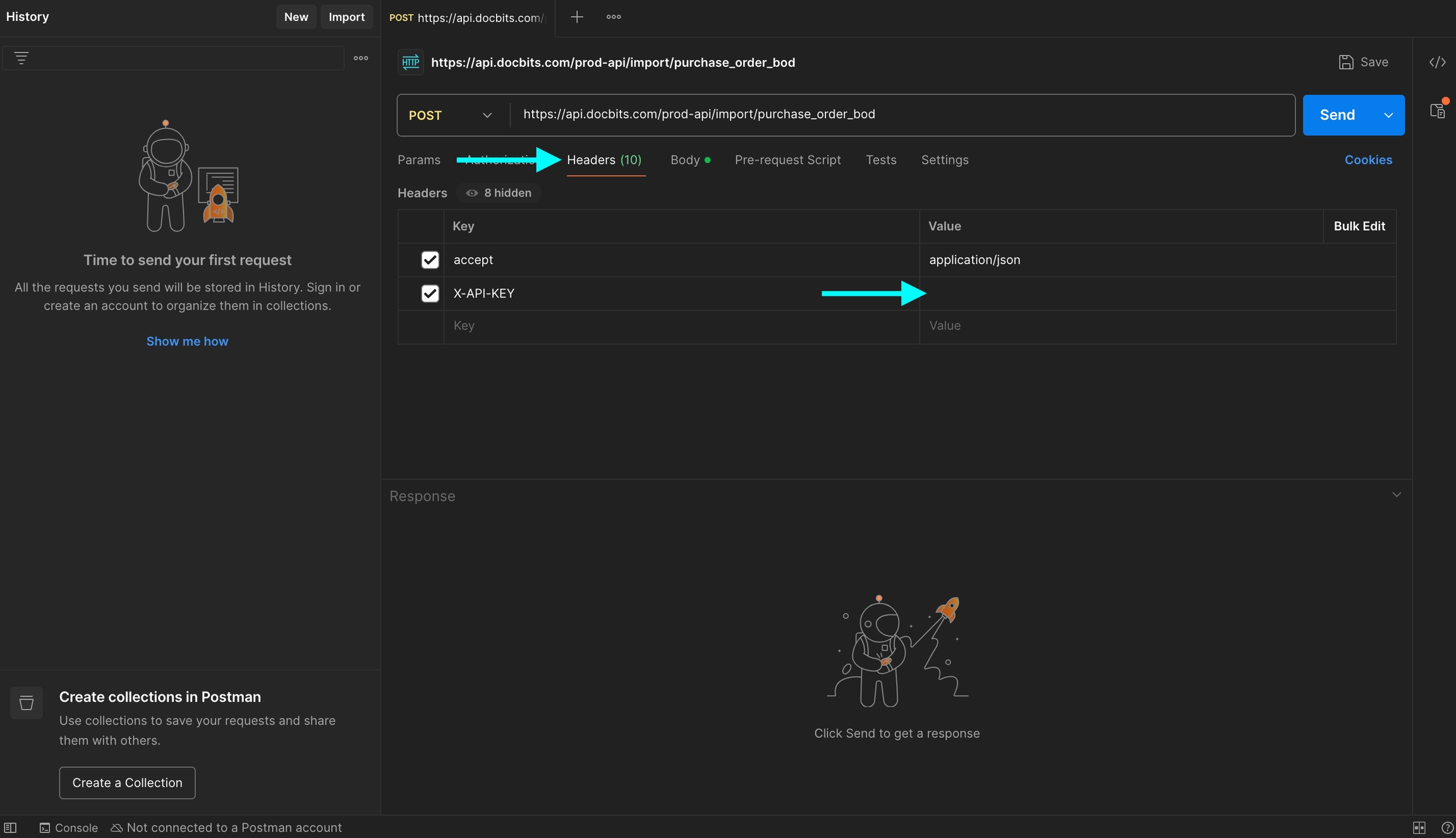 Imposta la Chiave API Vai alla scheda Headers, trova l'intestazione