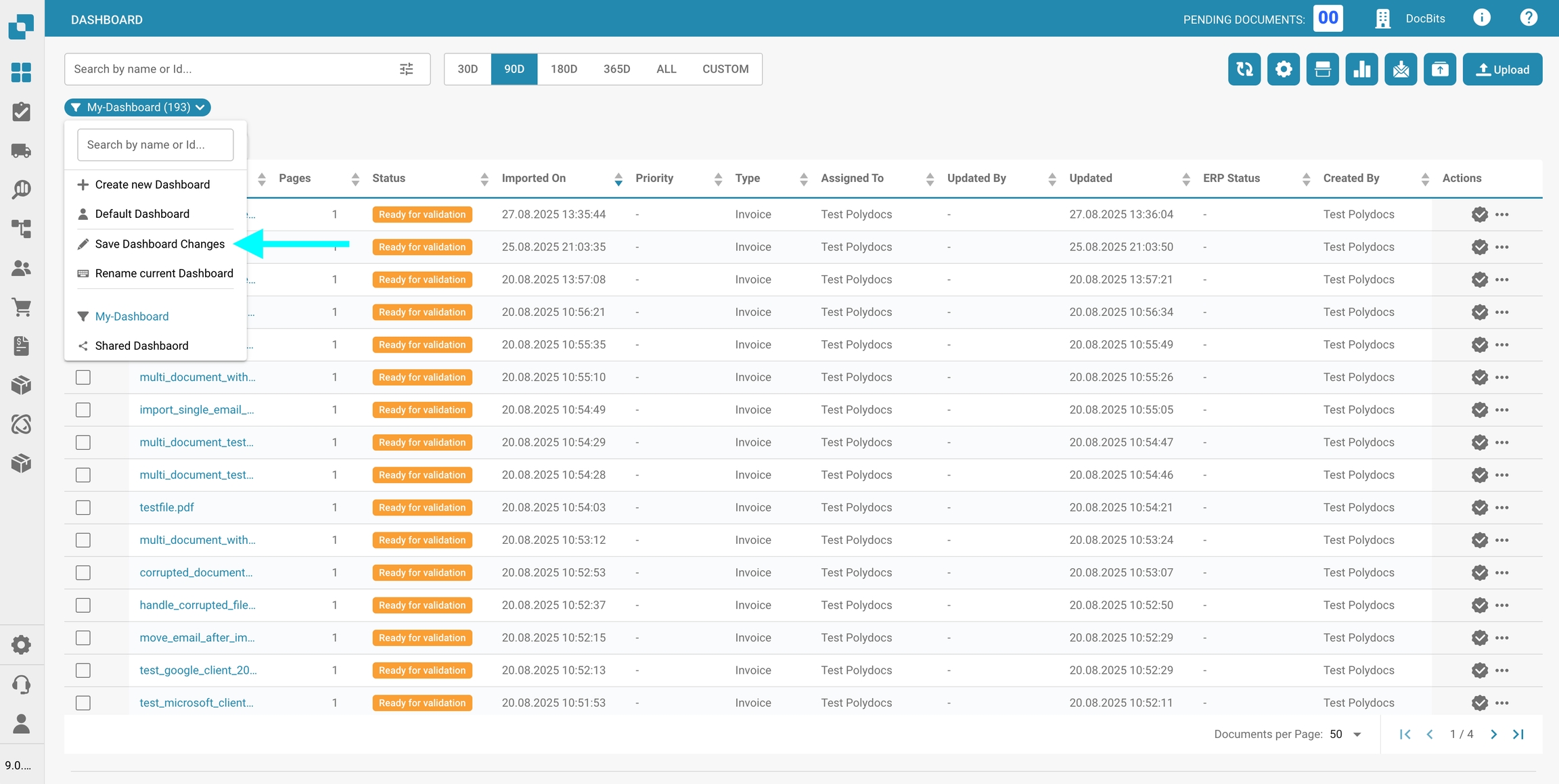 Una volta apportate le modifiche, clicca sul pulsante filtro sotto la barra di ricerca, quindi seleziona Salva le modifiche alla dashboard.