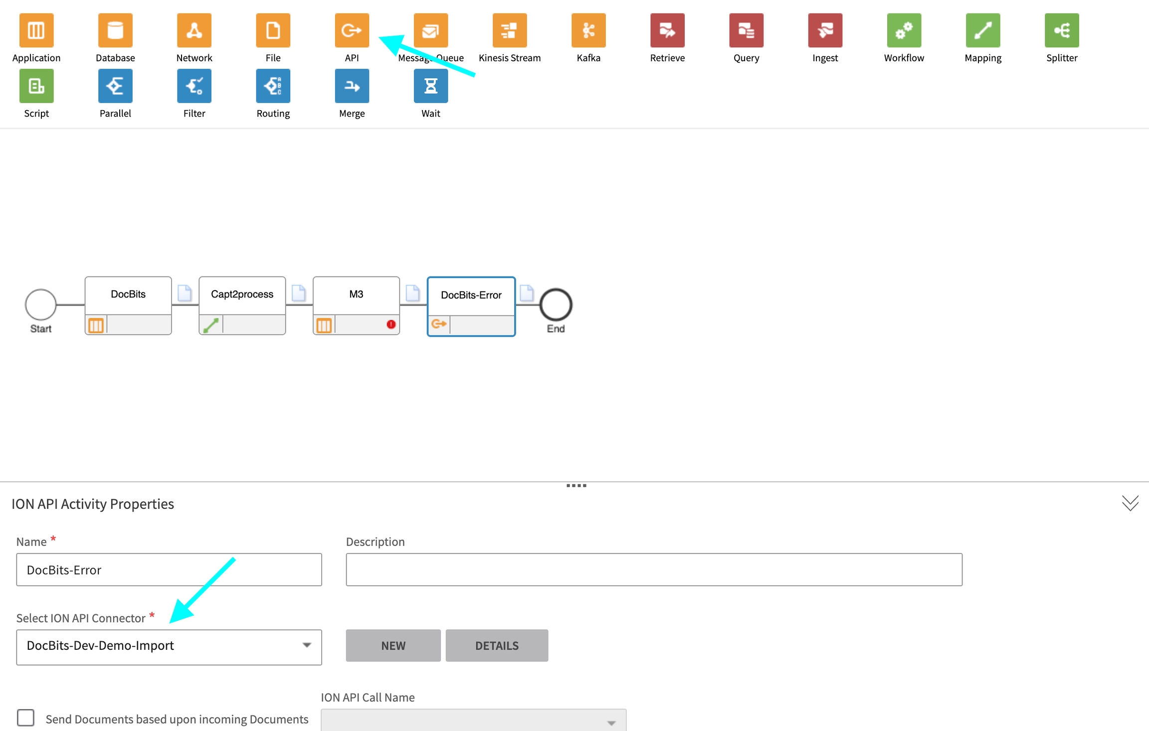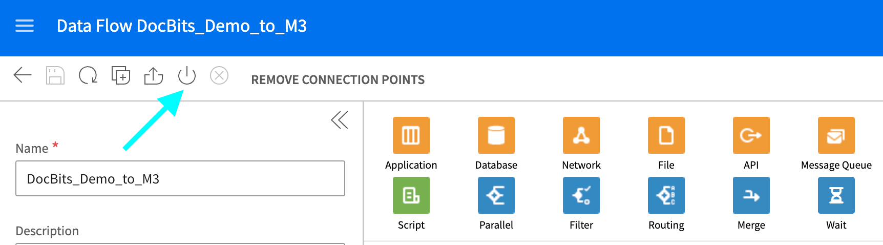DocBits_Importnon esiste, consultare il Passo 1 e il Passo 2 della documentazione Import from M3 per creare il Connection Point.