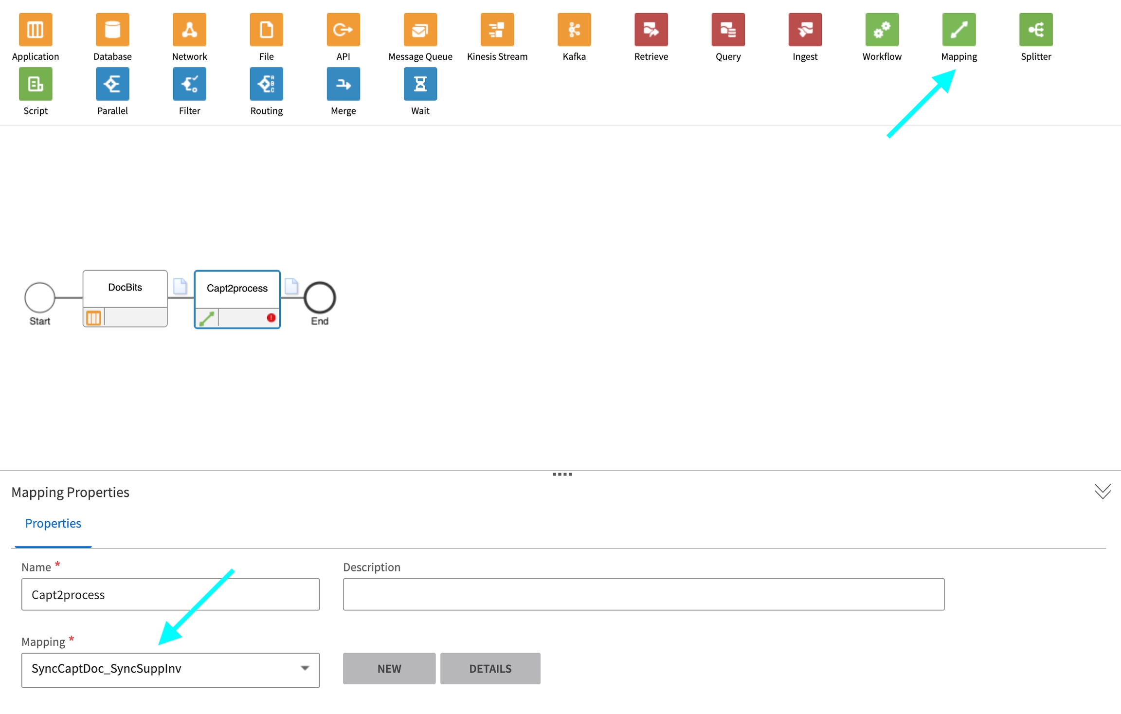 Aggiungere un Mapping Node a destra dell'Application Node.